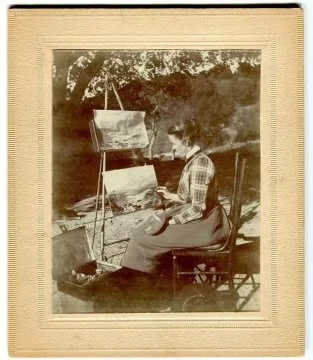 Image on left: Louisa Jacks Maxwell aka Aunt Lou painting in the field behind the kitchen.
